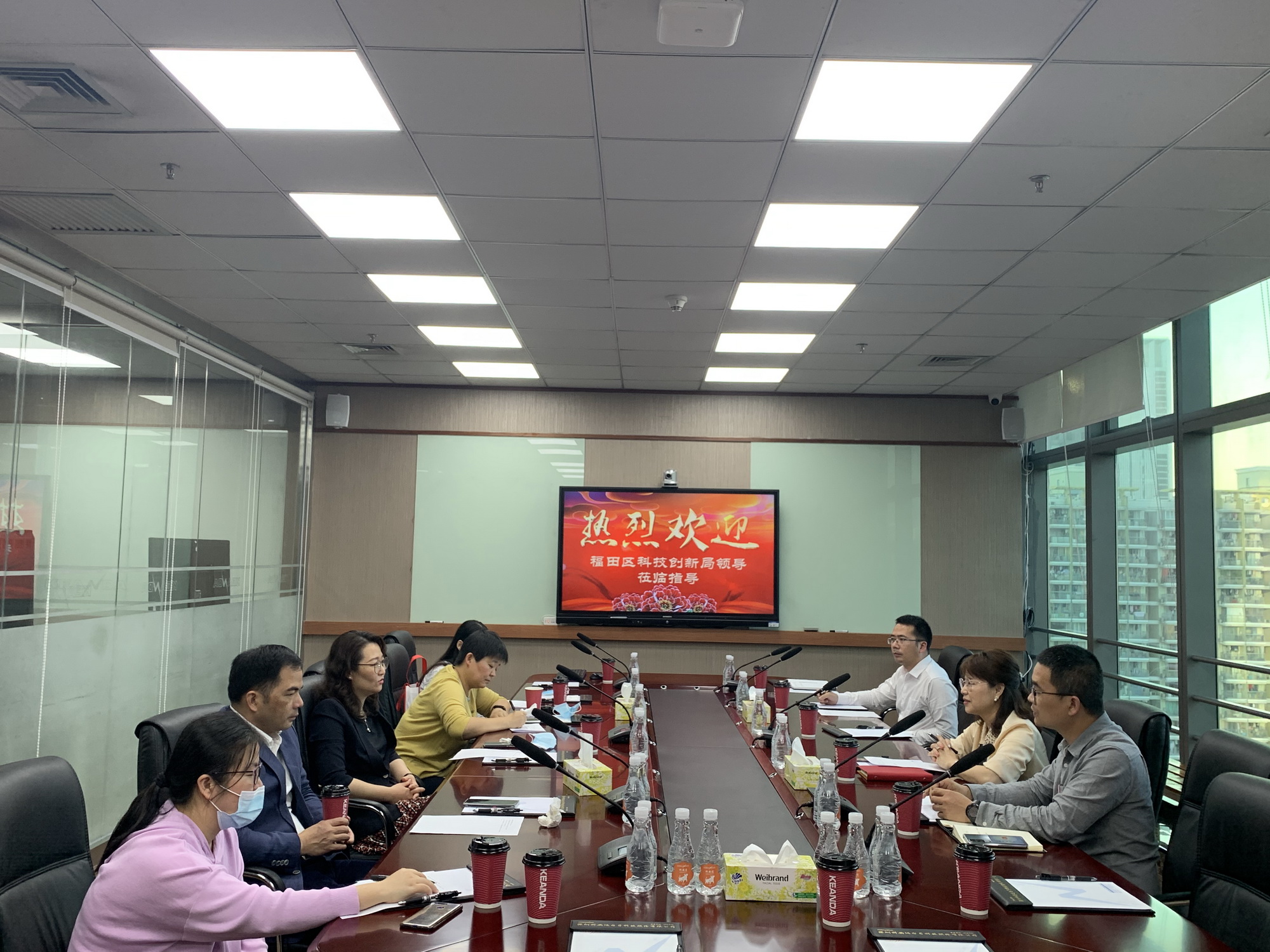 2月3日下午,福田區(qū)科創(chuàng)局陳妍梅副調(diào)研員、黃鋒科長(zhǎng)一行蒞臨科安達(dá)慰問指導(dǎo),科安達(dá)董事長(zhǎng)郭豐明、董事會(huì)秘書、人力資源部經(jīng)理熱情接待。